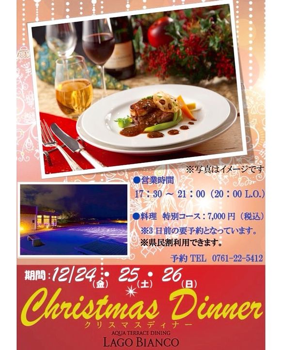ラーゴビアンコのクリスマスディナーの詳細です✨