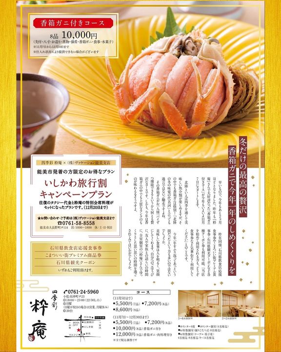 大好評の粋庵恒例『香箱ガニ付のコース』を今年もご用意しました。