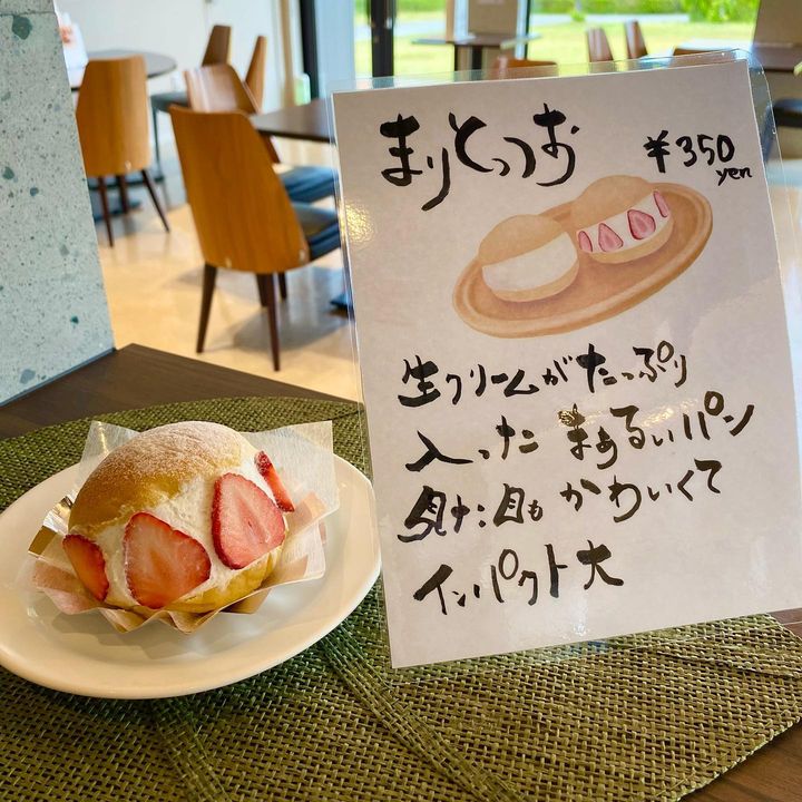 当店では生クリームとイチゴを挟み、見た目も綺麗に仕上げております🥯